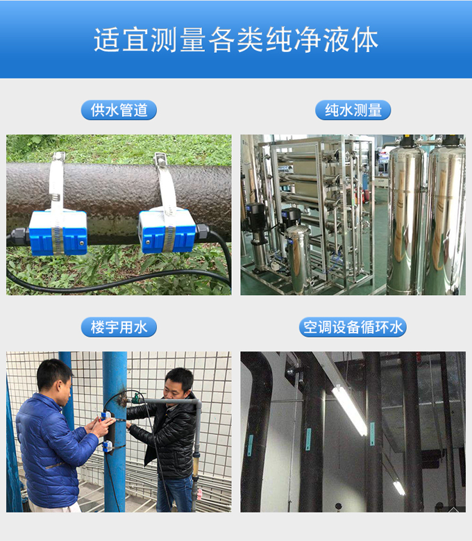 聯(lián)測超聲波流量計適合相對純凈液體流量的管外測量,尤其是在水流量測量、在工業(yè)循環(huán)水、空調(diào)制冷循環(huán)水、原水、高壓水、自來水,污水排放管等廣泛應(yīng)用。