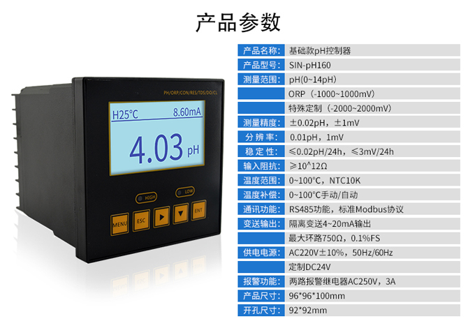SIN-pH160(2.0款)是工業(yè)pH計(jì),是工業(yè)酸度計(jì)的智能化升級(jí)產(chǎn)品,可對(duì)污水pH值進(jìn)行連續(xù)測量和控制,適用于城市污水處理廠、化工、印染、造紙、制藥、電鍍以及環(huán)保等領(lǐng)域。SIN-PH160根據(jù)水工業(yè)的環(huán)境和特點(diǎn)結(jié)合國際供電標(biāo)準(zhǔn),考慮了特殊環(huán)境的電氣設(shè)計(jì)規(guī)范,增加了220VAC以及安全的低電壓24VDC供電選擇。