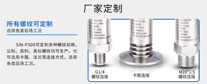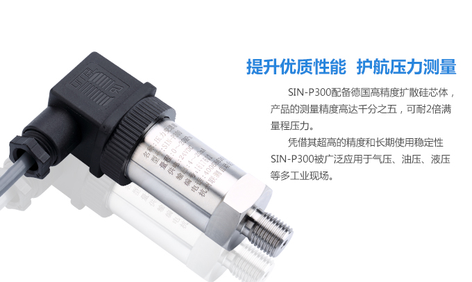 SIN-P300通用型壓力變送器德國(guó)進(jìn)口硅芯片,精度高性能穩(wěn)定;SIN-P300型通用型壓力變送器采用擴(kuò)散硅壓力芯體作為敏感元件,內(nèi)置處理電路將傳感器毫伏信號(hào)轉(zhuǎn)換成標(biāo)準(zhǔn)電壓﹑電流信號(hào)輸出,可直接與計(jì)算機(jī)、控制儀表﹑顯示儀表等相連。選用高穩(wěn)定性和高可靠性的壓阻式壓力傳感器和高性能的變送器專用電路,整體性能穩(wěn)定可靠,可進(jìn)行遠(yuǎn)距離信號(hào)傳輸。采用一體化全不銹鋼結(jié)構(gòu),經(jīng)過多次不銹鋼焊接,實(shí)現(xiàn)了全固態(tài)設(shè)計(jì),安裝方便,具有高抗振性和抗擊性,在惡劣環(huán)境中可以長(zhǎng)期使用。廣泛應(yīng)用于工業(yè)自動(dòng)化設(shè)備配套以及石油、化工、冶金、電力等控制領(lǐng)域。